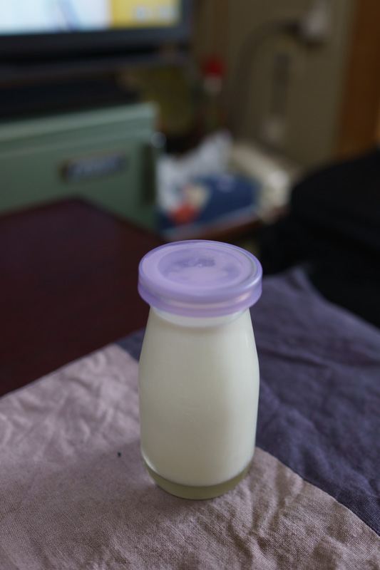 朝6時半に起床すると、絞りたての牛乳が届けられていました。