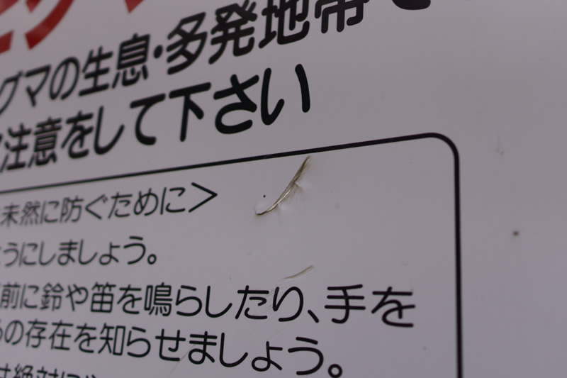 クマ注意の看板には、あまりかわいくないイラストが気に入らなかったのか