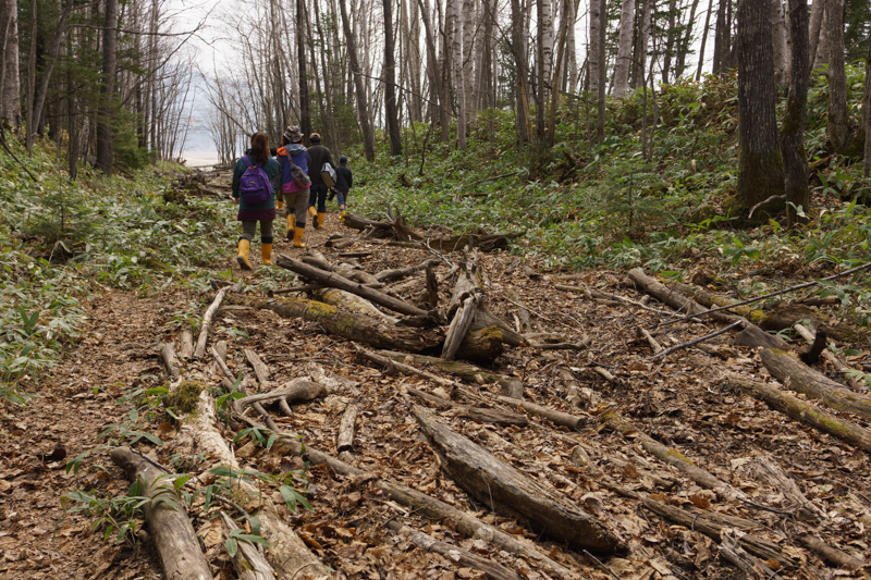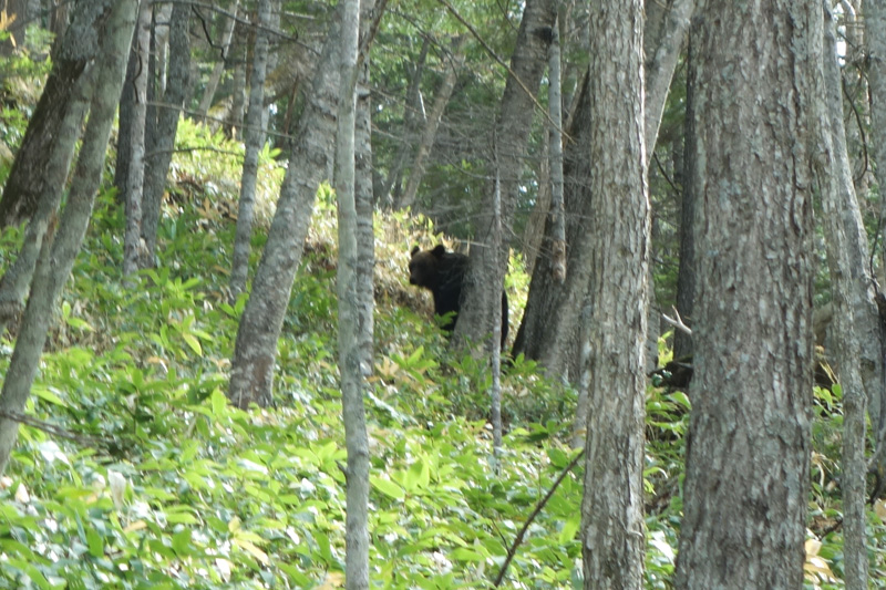 ヒグマ出没地帯を徒歩で行くしかありません。