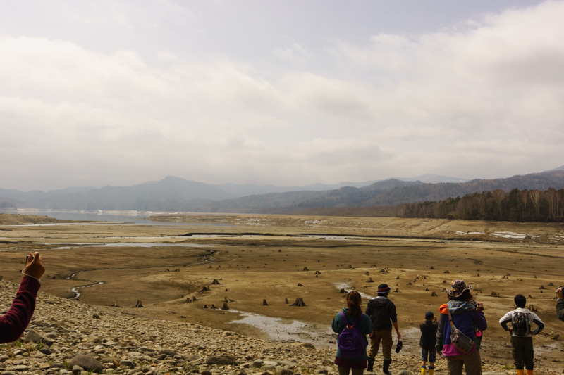すっかり干上がった糠平湖の広大な湖面が出現し、圧倒されます。