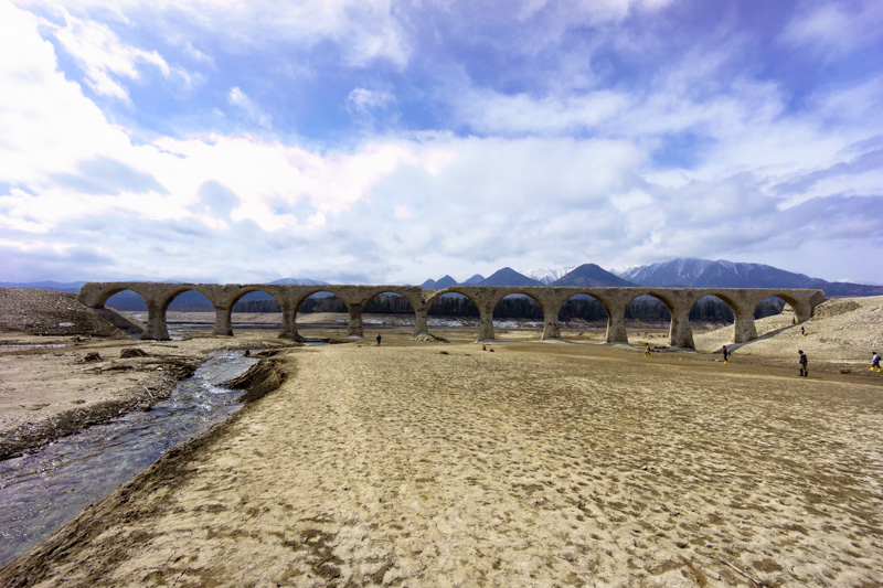 かつての現役の頃のタウシュベツ橋梁は白くなくて碓氷峠のめがね橋とか