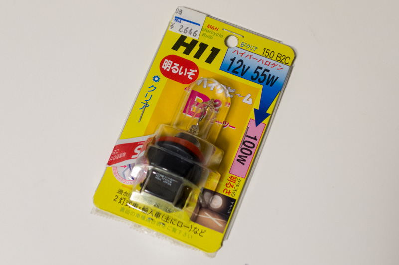 切れたのはHID風の白い光で倍の明るさだというPIAAのバルブですが、お値段だけはやたら高いくせに、運が悪いだけかもしれないけど寿命が短いし、言うほど明るいわけでもないし。