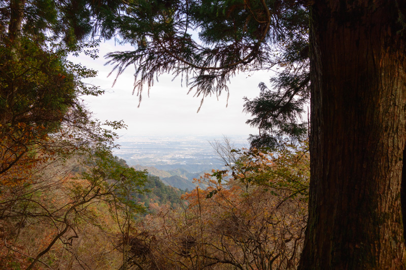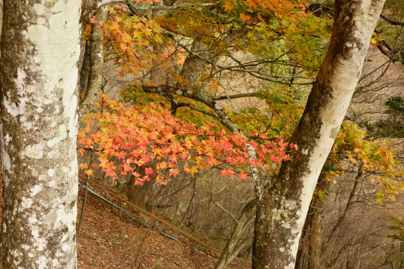 杉だらけですが、中腹にはちょうど見頃の紅葉もあり。