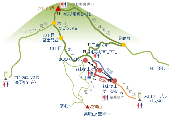 ふもとの大山ケーブル駅から女坂で大山寺経由で阿夫利神社下社。