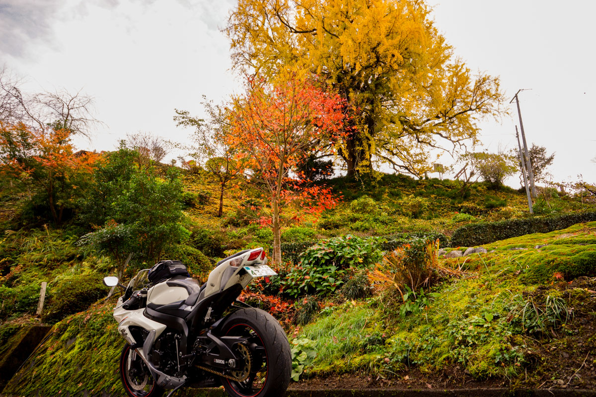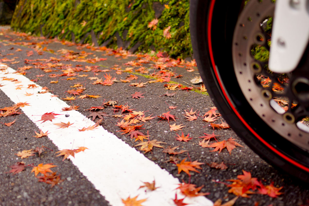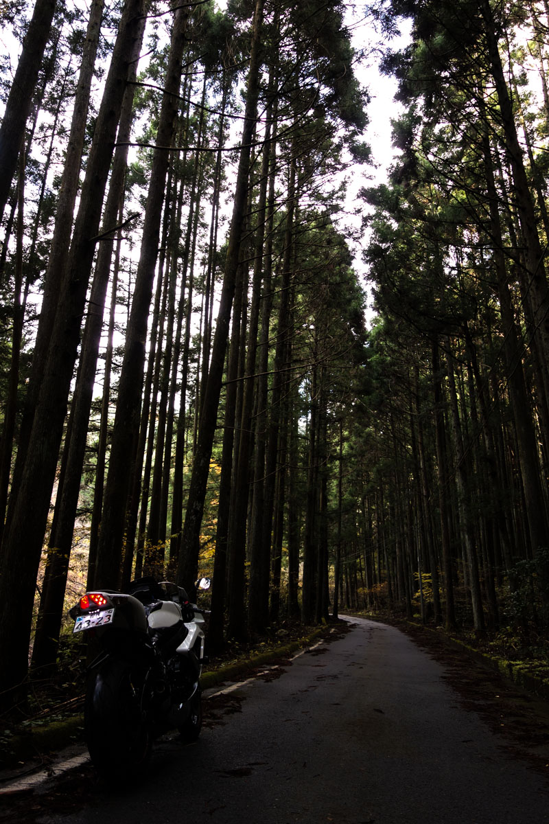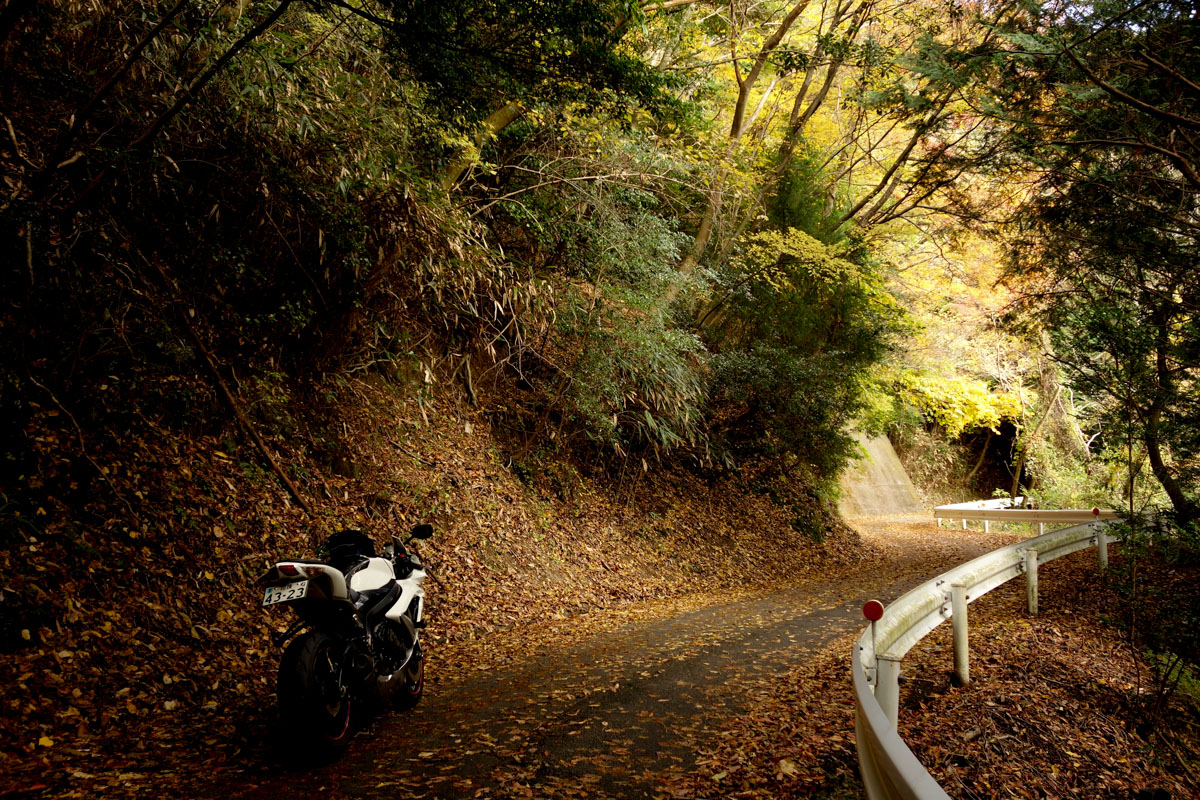 準険道ちっくなクネクネ道と、前日の雨でしっとりぬれた一面の濡れ落ち葉の絨毯攻撃に行く手を阻まれ、阻まれ・・・これはこれで・・・その、快感なんですけど・・・