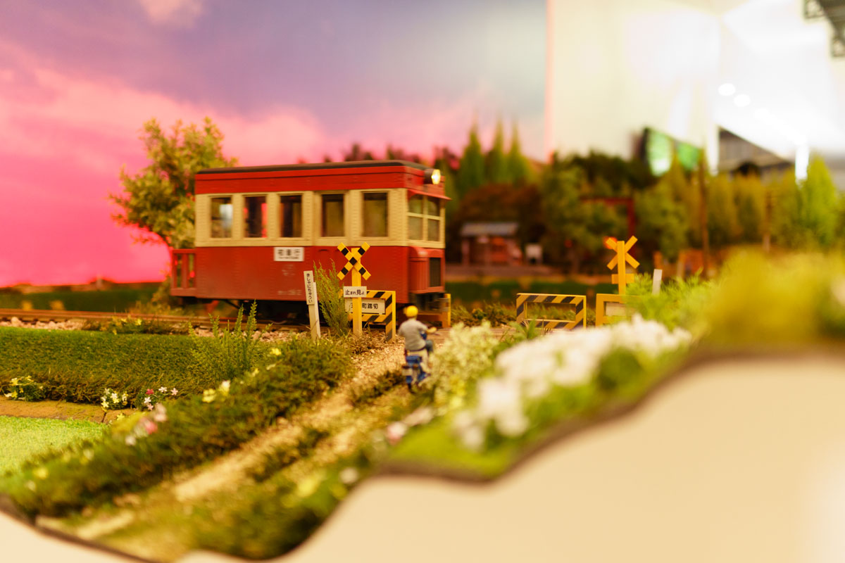 SONYのブースでは、大人気のフルサイズミラーレス機であるα7の、一眼レフに遜色ない優れたたAF追従性能を見せ付けるべく、上空を鷹がくるくると飛んでいたり、ジオラマを電車がぐるぐる回っていたり、大々的なセッが設営されておりました。