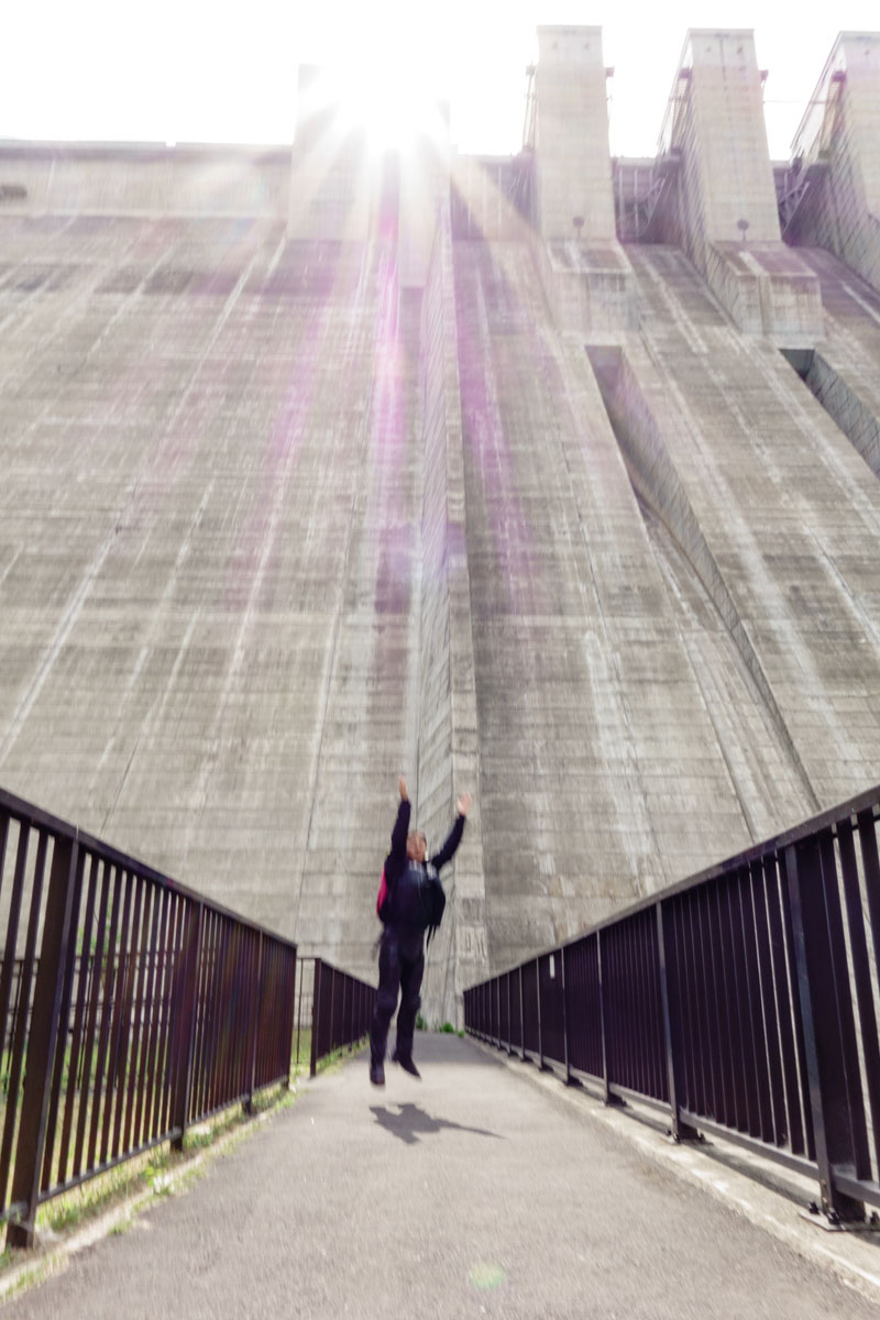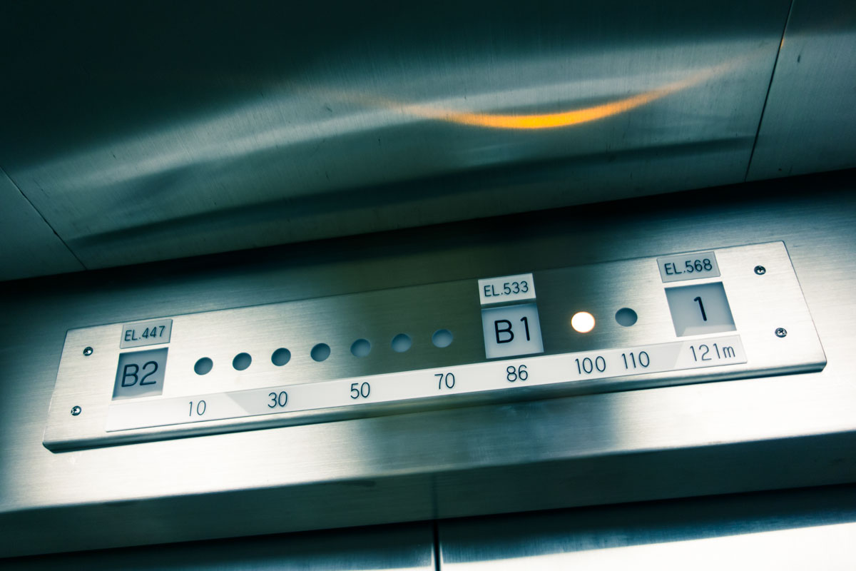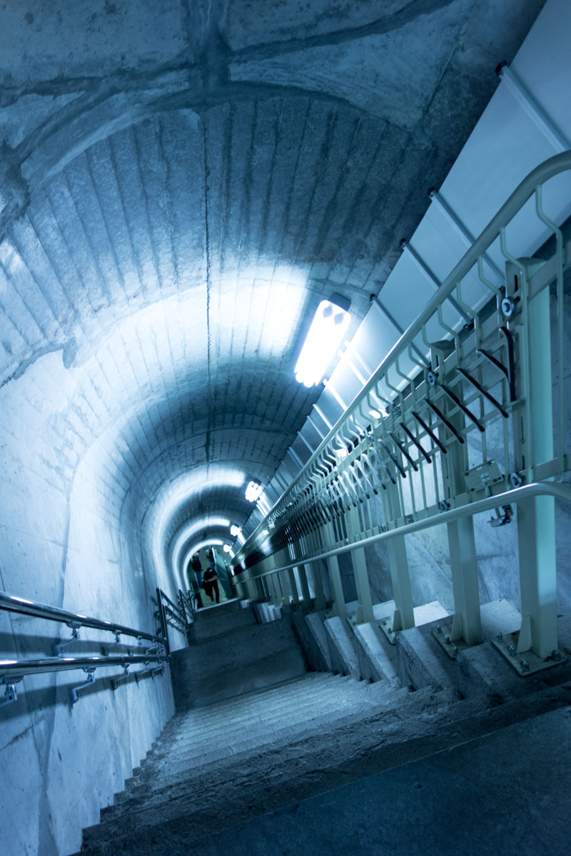 堤体中央のエレベーターで一気にぐぐーんと100m降下・・・。