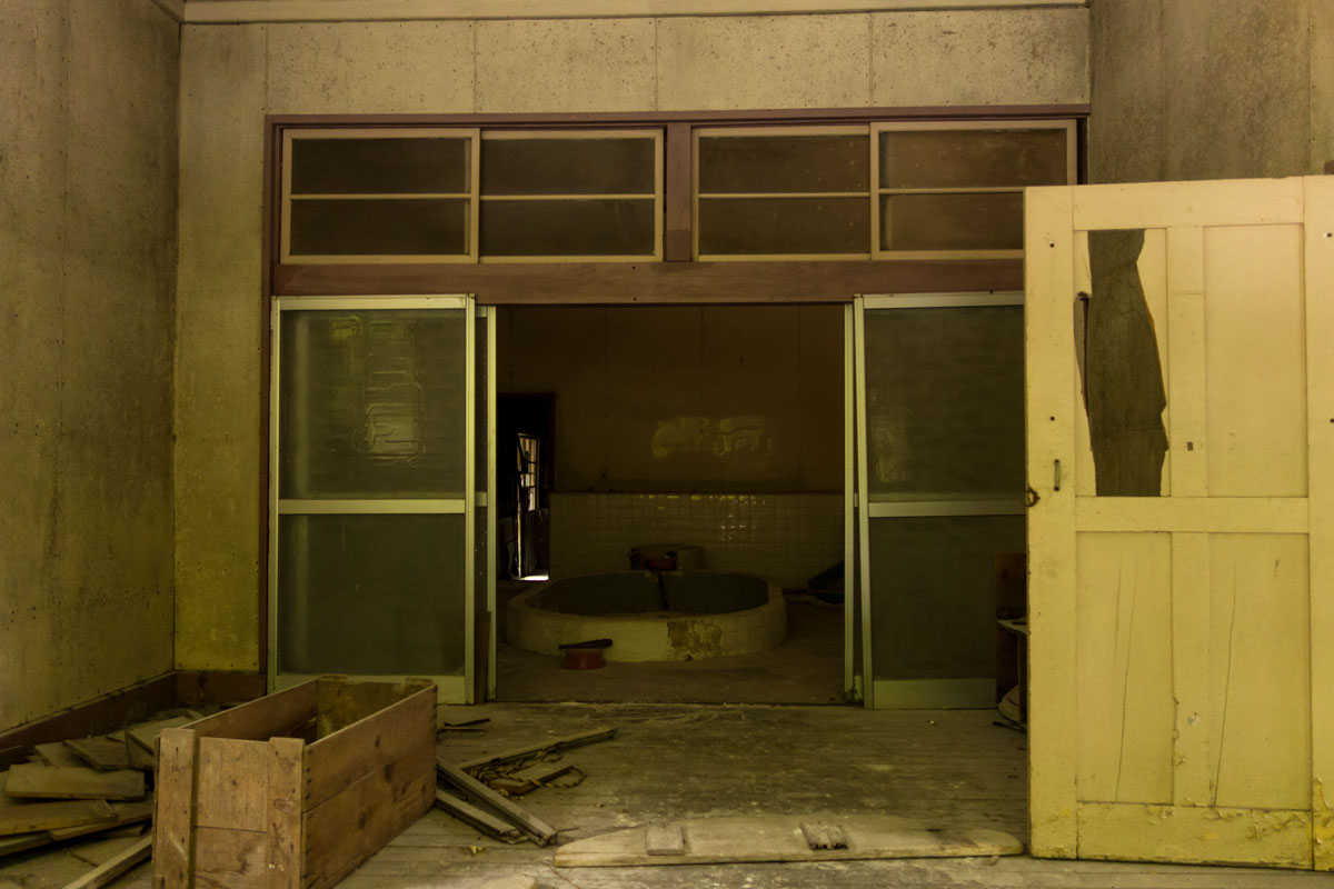 以前はがっちりと窓が閉まっていた共同浴場も見るも無残な掘っ立て小屋になっており。