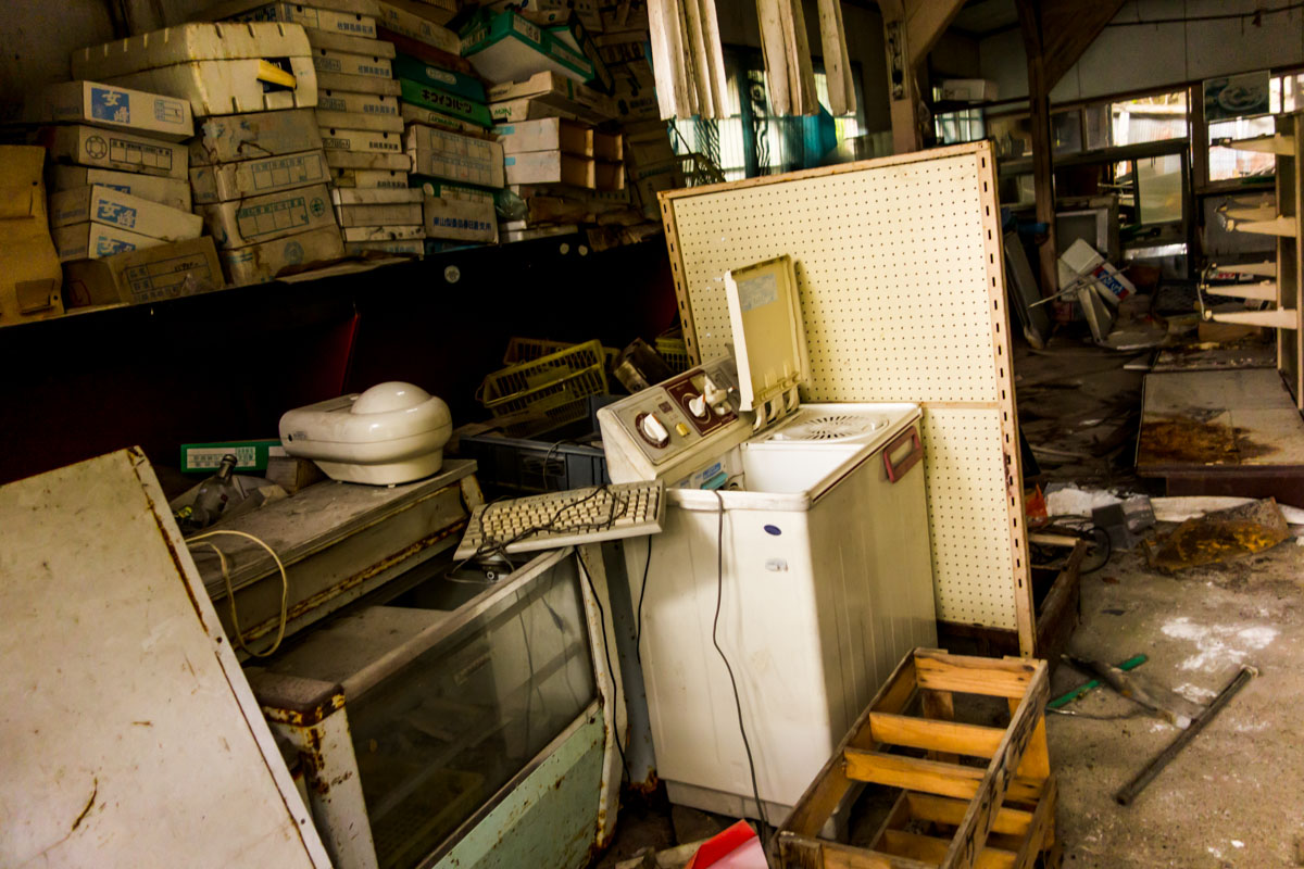 売店も以前は整然としていたのに屋根が剥がれ落ちこの有様。