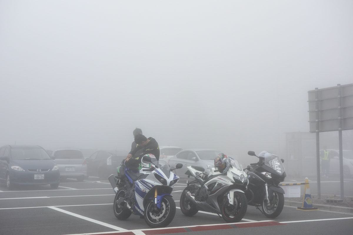 が、途中から雲の中に突入してしまい、一寸先も見えない真っ白な中を進み、カルガモ走行になってしまいイライラ。