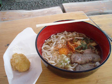 おなかいっぱいうどん(たしかそんな名前)と、名物の温玉あげを注文。