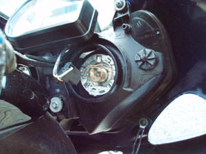 作業にはフロントカウルをライトごと外す必要がある。