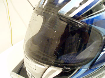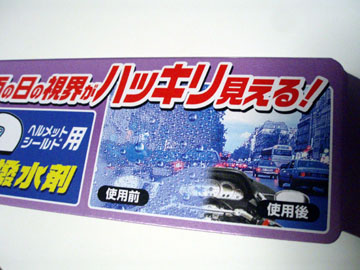 先日、ヘルメットのシールド撥水材の