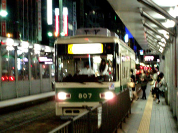 アストラムライン(モノレールみたいなやつ)に乗って夜の広島へ。