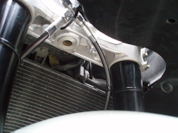 フロントの取り回しはステムの三又の下で左右に二股に分岐。