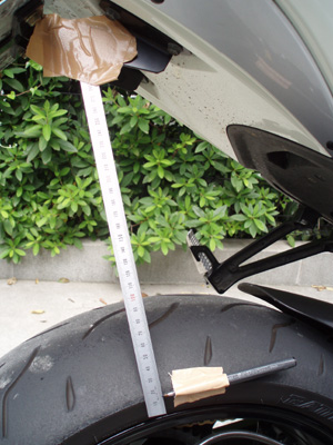 通常、リアのサグの計測には人手が必要なのですが