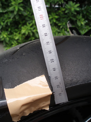 ナンバープレートのステーに定規をガムテープで固定します。