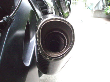 そう、赤いまふりゃお、ヨシムラR-55スリップオンのバッフル。