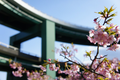 河津桜は、例年のように海に近い川沿いのあぜ道ではなく