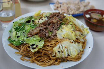 モツ煮とトーフ汁も定番だということで、一緒に食べてこれまたうんまい。