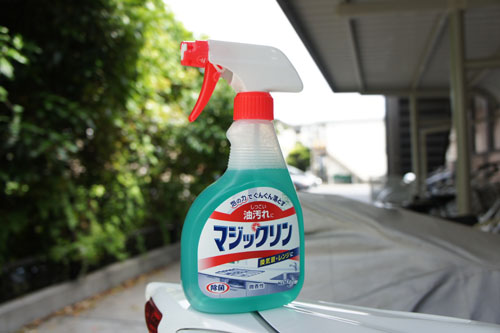 マジックリンをかけて、汚れが浮き上がるまで少し放置したら、再びハブラシ。