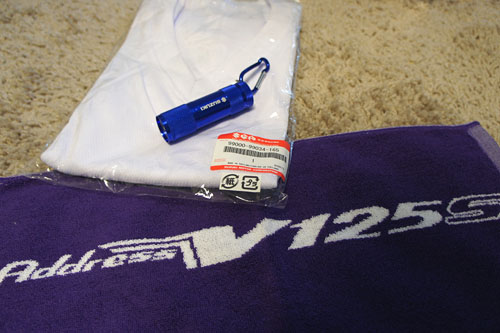 お土産は、スズキの速乾素材なTシャツと、LEDライト、タオル。