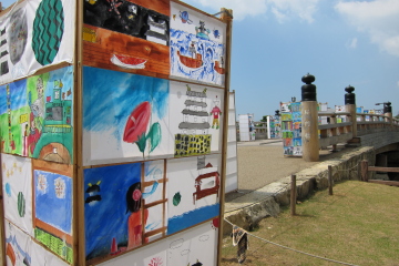城下はでは夏休みらしく、姫路の小中学校の生徒が作った行灯祭りが開催中。