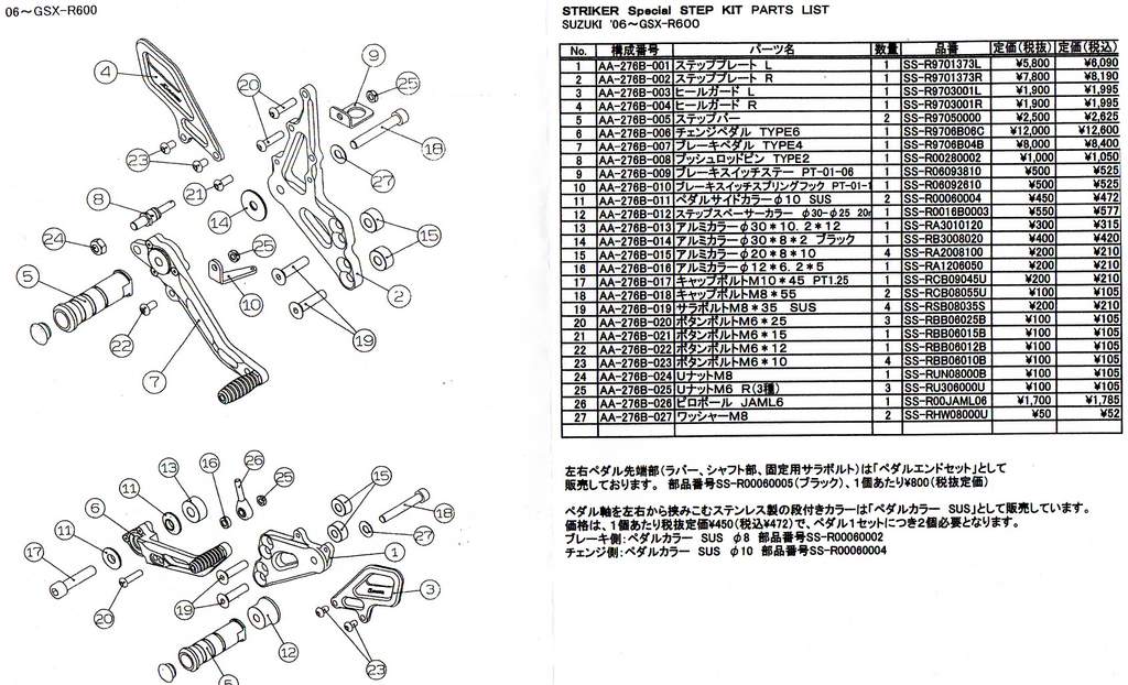 GSX-R750 K9 に幸運を呼ぶアイテム、STRIKER のSPECIAL STEP KIT