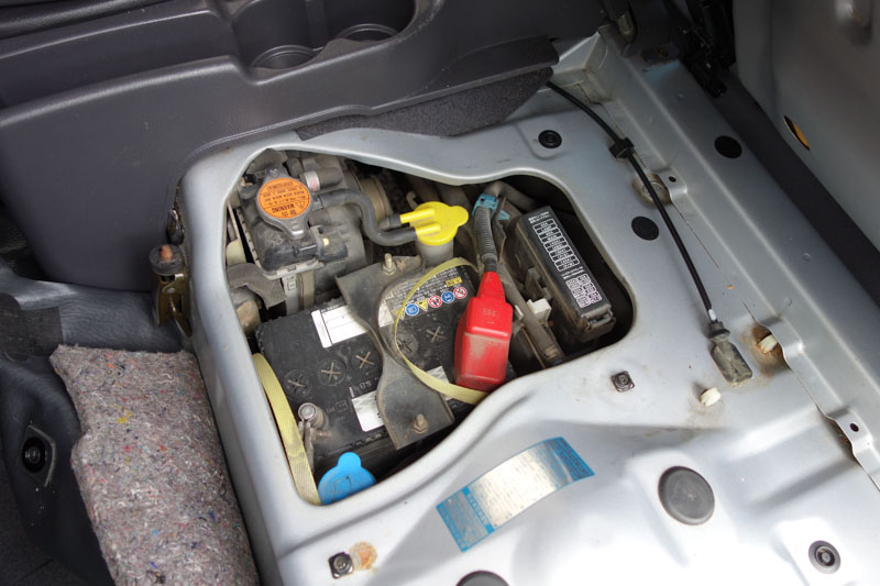 バッテリーってどこだ? とマニュアルを読んだらなんと、助手席の下。