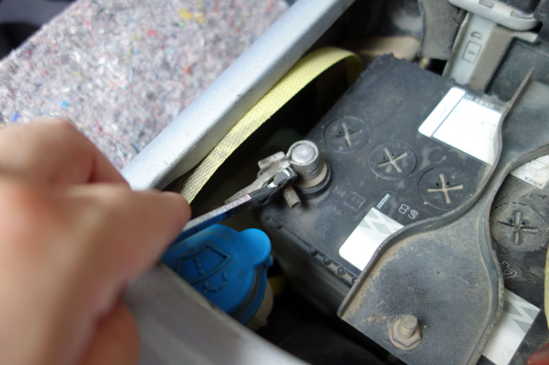 電気の作業前にはバッテリーのマイナス端子を外さねば。