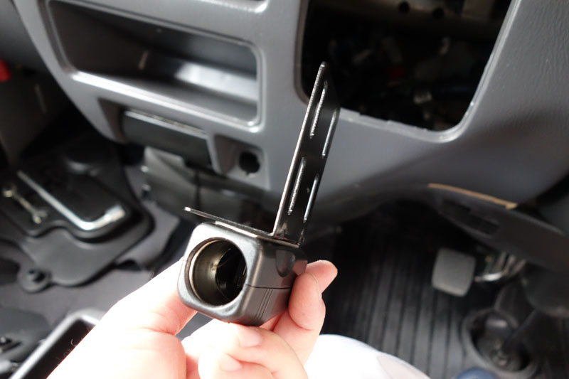 というわけで、余っていたL字型のステーを使って穴の部分にシガソケを配置できるようにします。