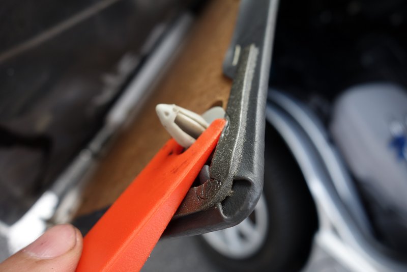 この時に、内張りを引っ張ってしまうと、ベリベリと内張りが壊れてしまうので、専用のレバーを買ってきて抜きました。