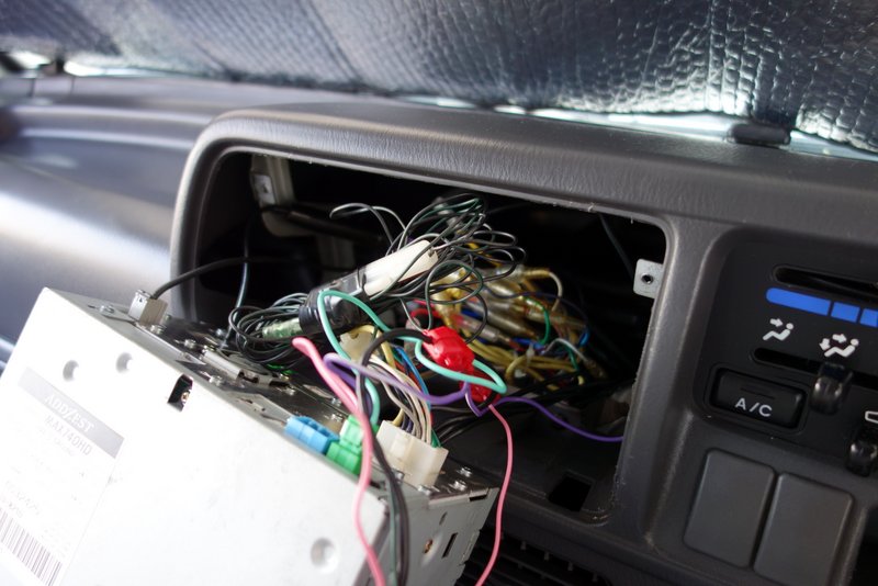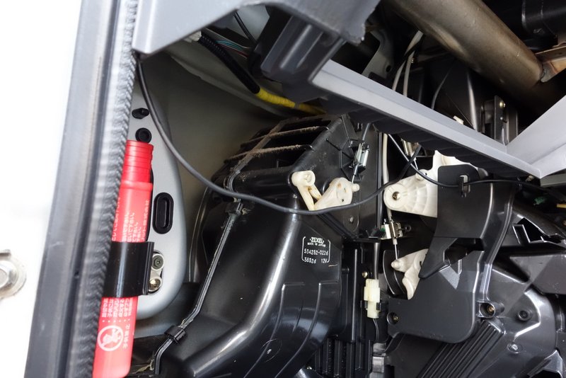 グローブボックスを外すと裏側の配線類がよく見えるようになります。
