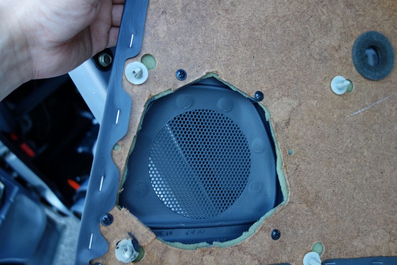 内張りを戻す前に、スピーカーグリルを内張りにネジ止めします。