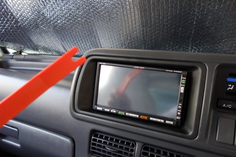 ナビは内張りはがしレバーを使って周りのカバーを外しまして。