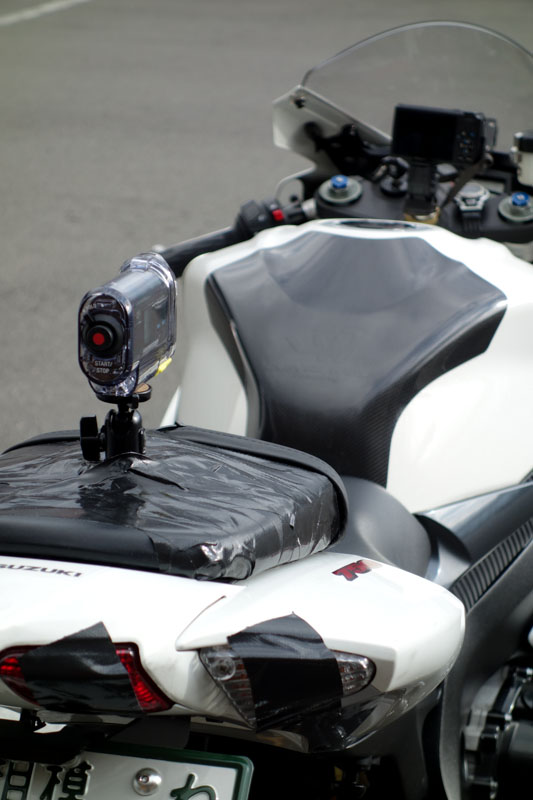ガムテープでリアシートにぐるぐる巻きにした、製作時間5分の逸品・・・じゃないや、代物。