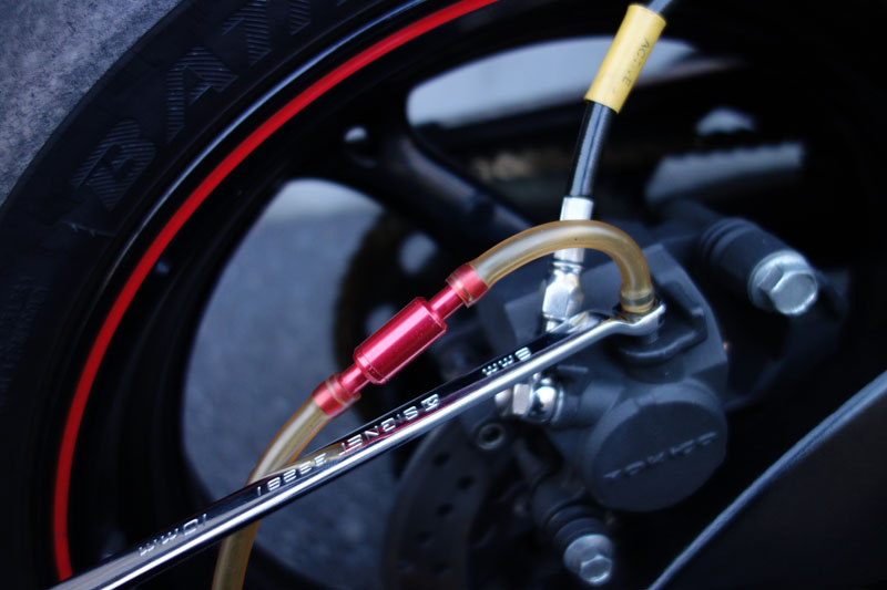 というのも、昨年末の練習でリアブレーキホースのカシメ部分から