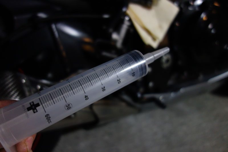 注射器でブリーダーから吸い出してやると比較的早くエア抜きが出来ます。