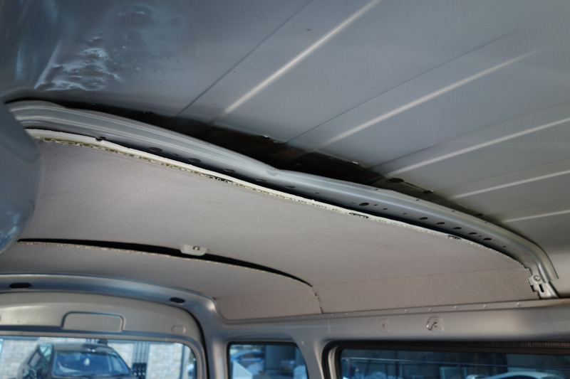 昨日ルーフが凹んでるのを発見したサンバーのルーフをまじまじ観察。