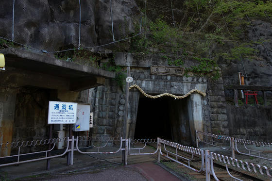 トロッコに乗ることわずか1分で、通洞坑という鉱山跡の坑内に到着。