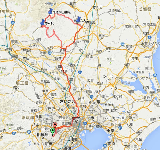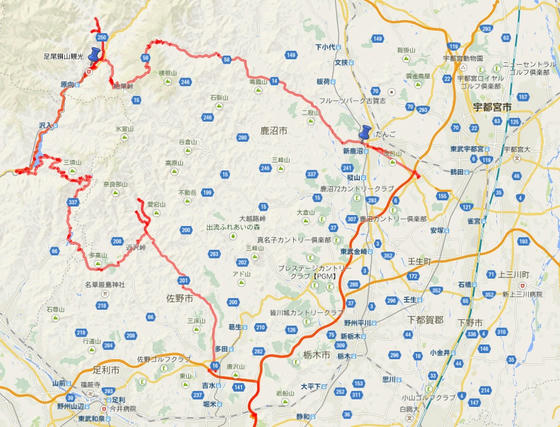 足尾銅山でしょんぼりした後は、県道で山を超えて鹿沼の町を目指します。