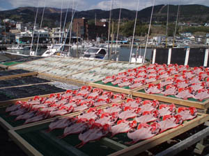朝市で食べた干物と味噌漬けとあら汁がおいしかった。