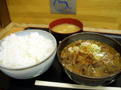 やっと帰りに、巨大もつ煮を食べただけで。