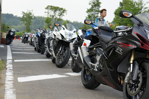 今回の試乗会で乗れるのは、GSX-R750、GSX-R600、GSR750のL1(2011年モデル)! の3台の中から2台のみ・・・。
