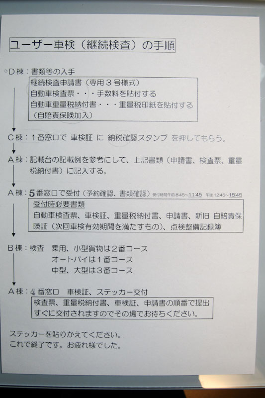 陸運事務所(車検場)の書類購入窓口で、バイクの車検に必要な