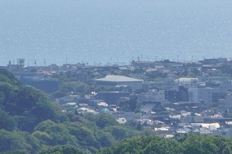 撮影したのだけど等倍にすると↓のように海辺の電線まで見えて、ちょっと驚いた。