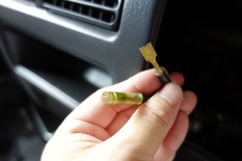 なので、シガーソケットのギボシを車体側に合わせて、平べったいのに付け替えました。