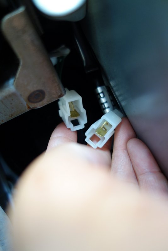 最初、(ちゃんとした?)ハーネスから来てるのかと思っていたけど、よくみると他のケーブルにビニールテープで巻いてあるだけでした。