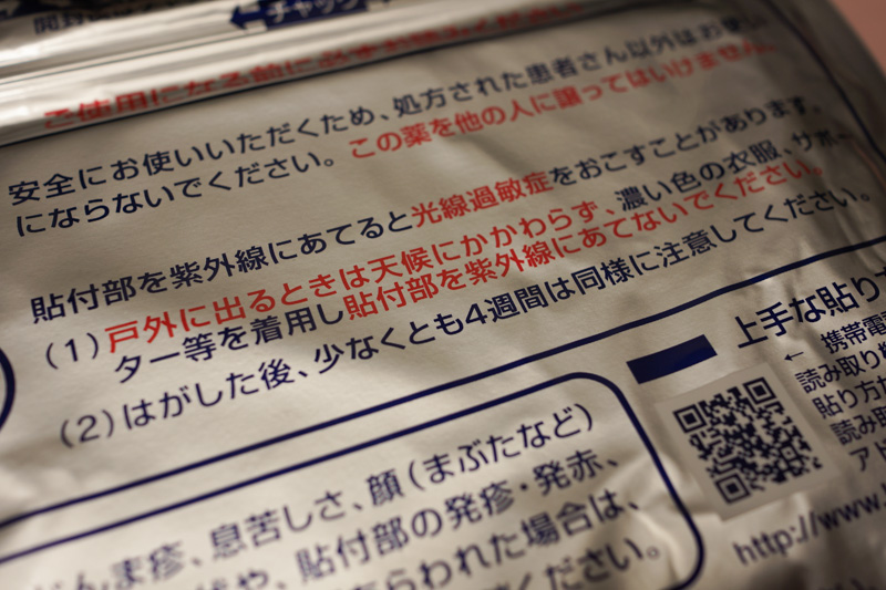 なんだよただの湿布かよと思ったら、注意書きを読むと、かなり物騒なやつらしいです。